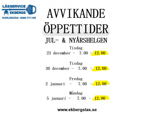 För avvikande öppettider, se fliken "Kontakta oss"